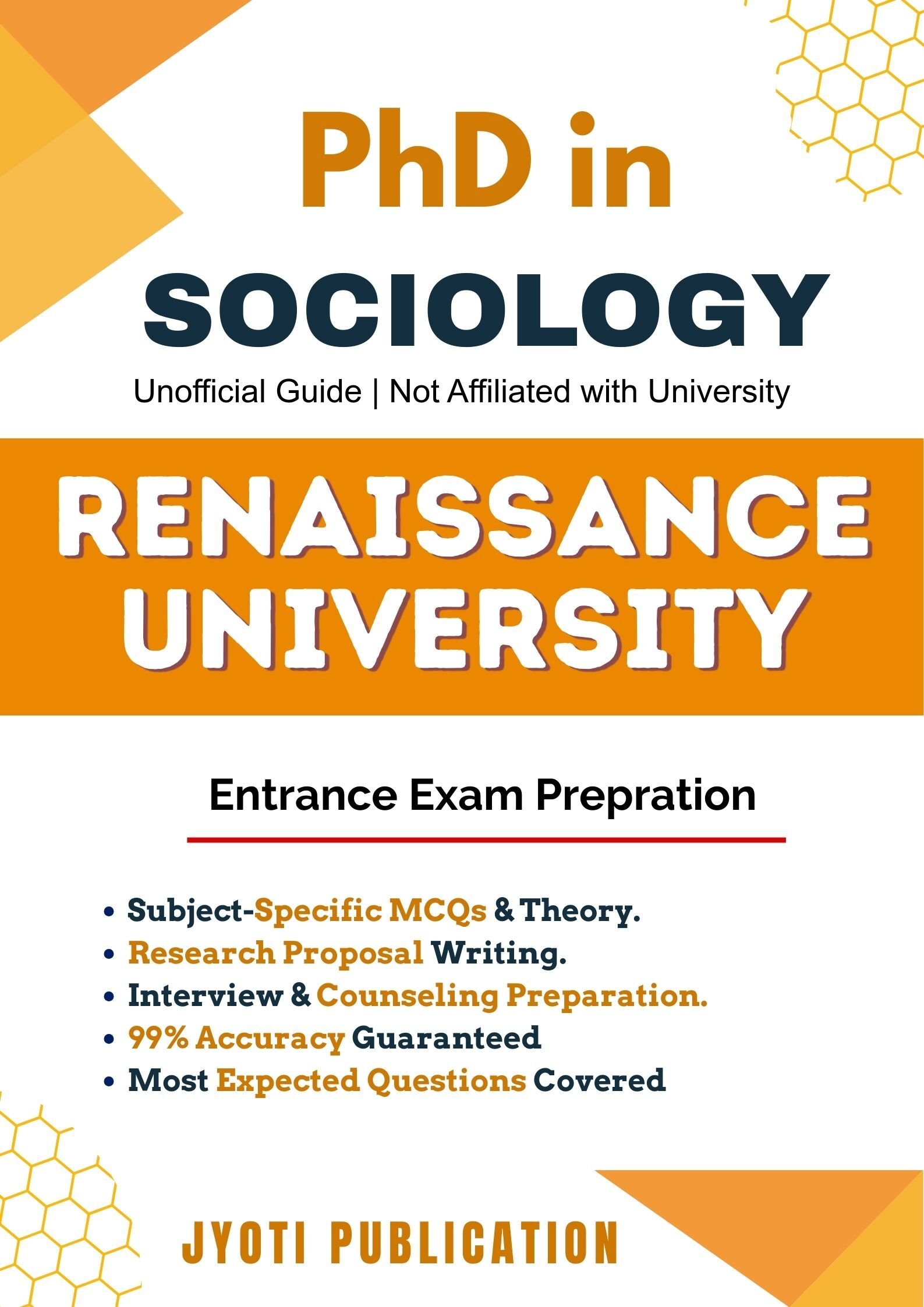 Renaissance University PhD in Sociology Entrance Exam Preparation Guide is an independently developed study resource created to support aspirants preparing for the PhD in Sociology entrance examination conducted by Renaissance University. The book is designed to help candidates understand concepts clearly, practise exam-oriented questions, and prepare in a structured and efficient manner.