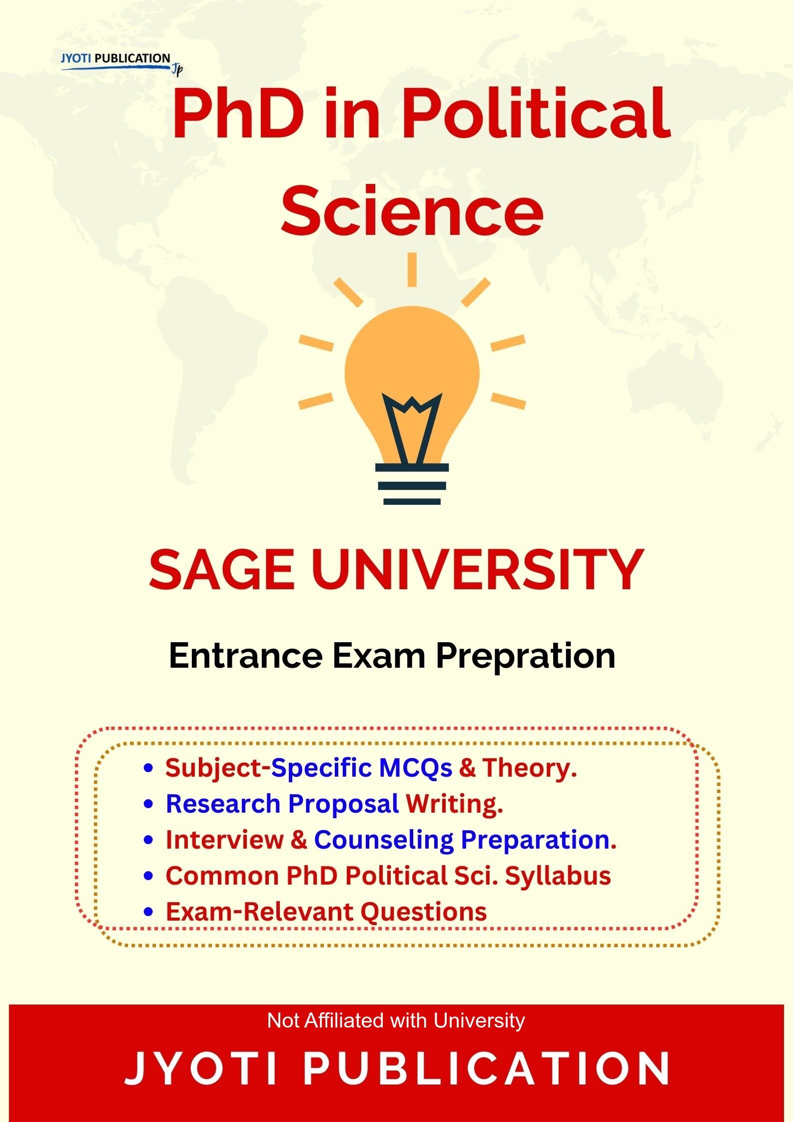 Sage University PhD in Political Science Entrance Exam Preparation Guide is an independently developed study resource created to support aspirants preparing for the PhD in Political Science entrance examination conducted by Sage University. The book is designed to help candidates understand concepts clearly, practise exam-oriented questions, and prepare in a structured and efficient manner.