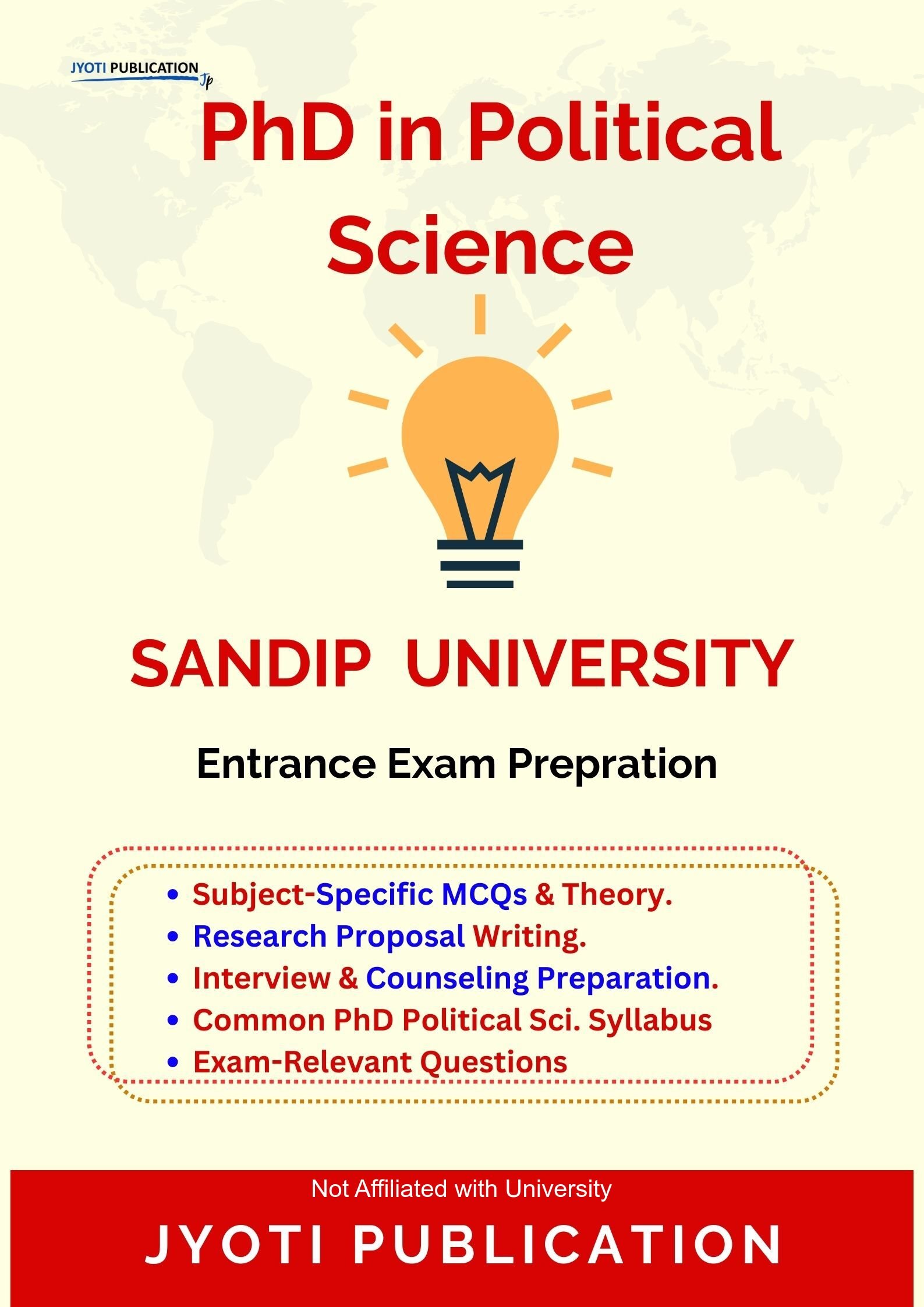 Sandip University PhD in Political Science Entrance Exam Preparation Guide is an independently developed study resource created to support aspirants preparing for the PhD in Political Science entrance examination conducted by Sandip University. The book is designed to help candidates understand concepts clearly, practise exam-oriented questions, and prepare in a structured and efficient manner.