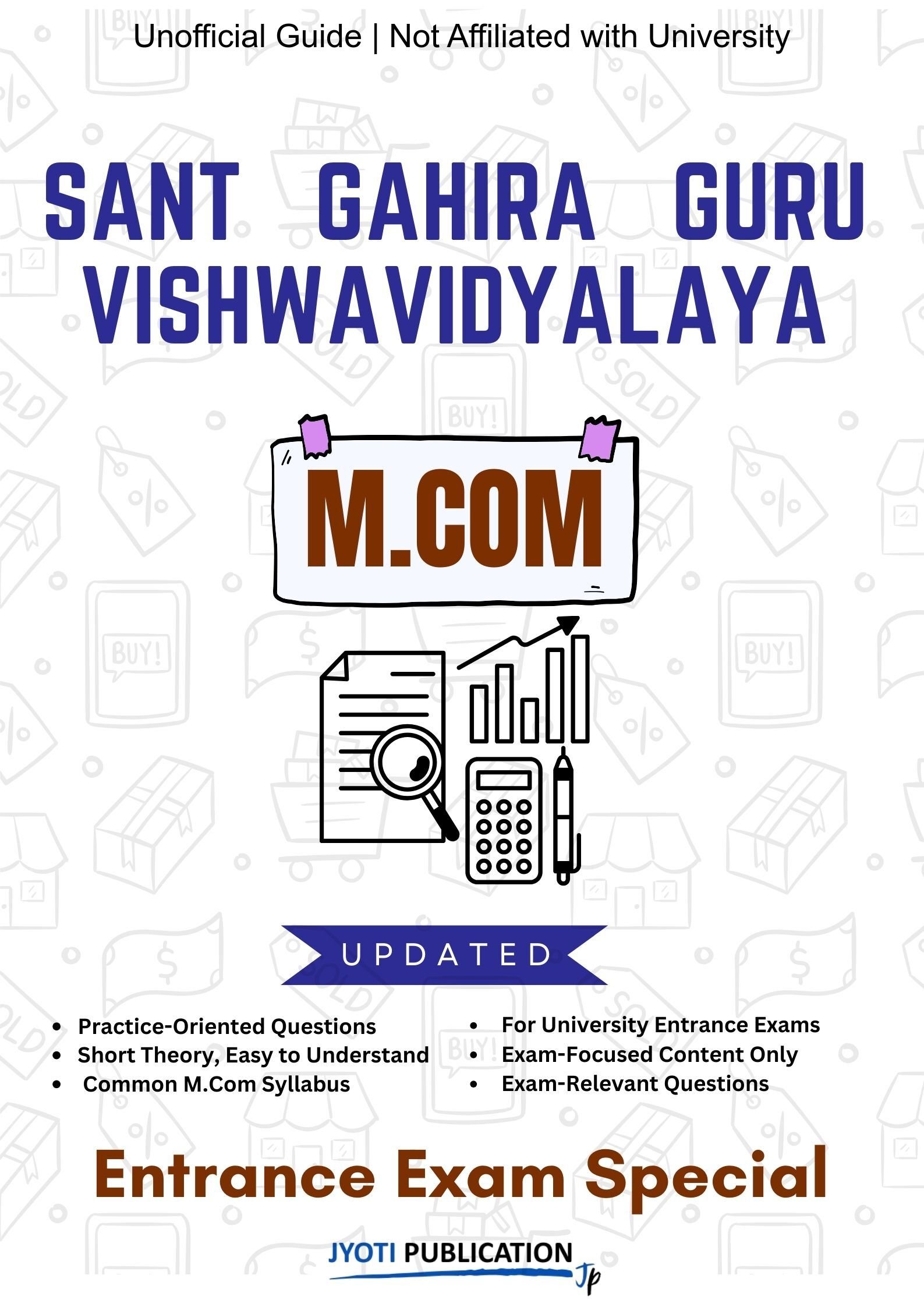 Sant Gahira Guru Vishwavidyalaya formerly Sarguja University M.Com Entrance Exam Preparation Guide is an independently developed study resource created to support aspirants preparing for the M.Com entrance examination conducted by Sant Gahira Guru Vishwavidyalaya formerly Sarguja University. The book is designed to help candidates understand concepts clearly, practise exam-oriented questions, and prepare in a structured and efficient manner.