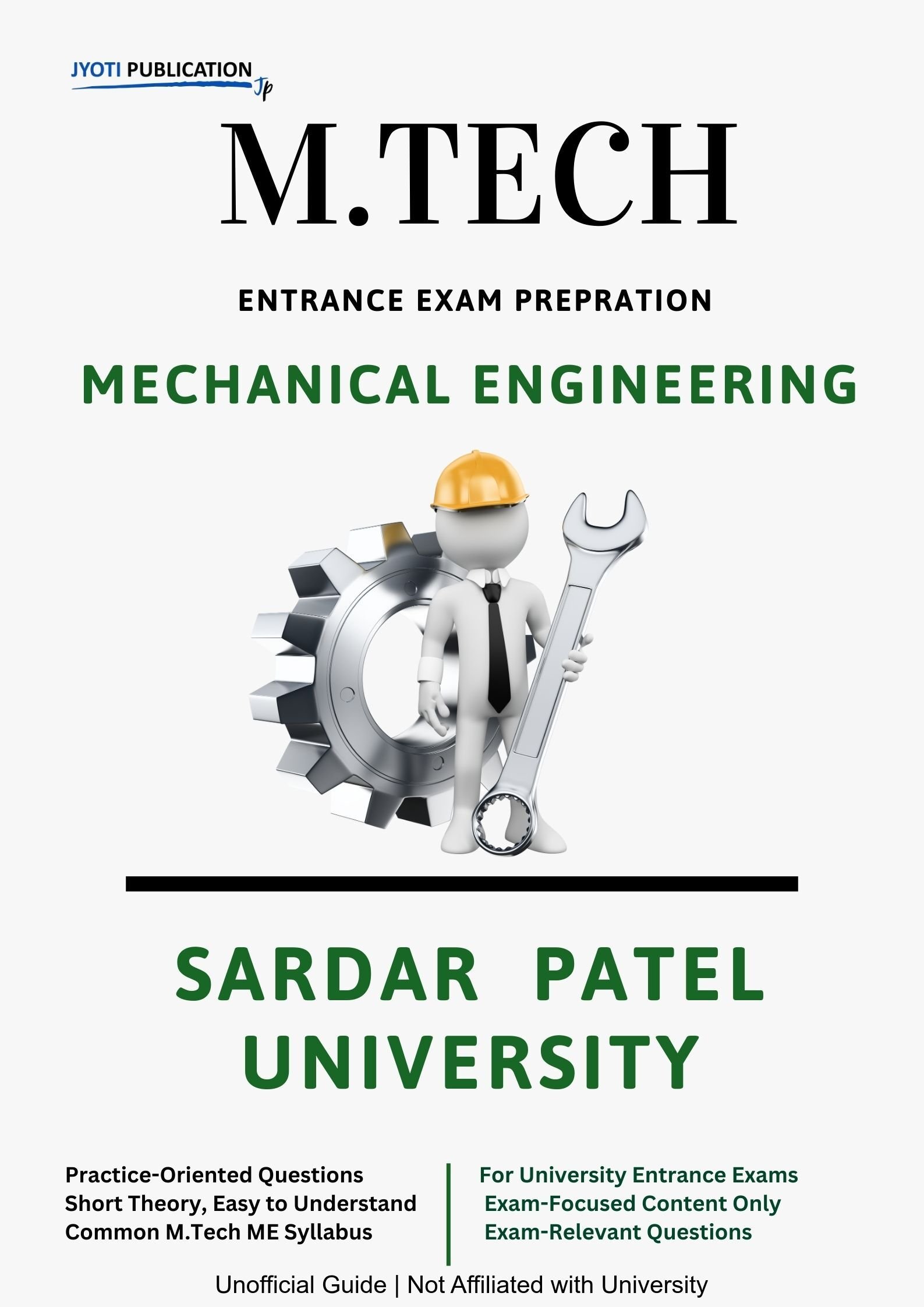 Sardar Patel University M.Tech in Mechanical Engineering Entrance Exam Preparation Guide is an independently developed study resource created to support aspirants preparing for the M.Tech in Mechanical Engineering entrance examination conducted by Sardar Patel University. The book is designed to help candidates understand concepts clearly, practise exam-oriented questions, and prepare in a structured and efficient manner.