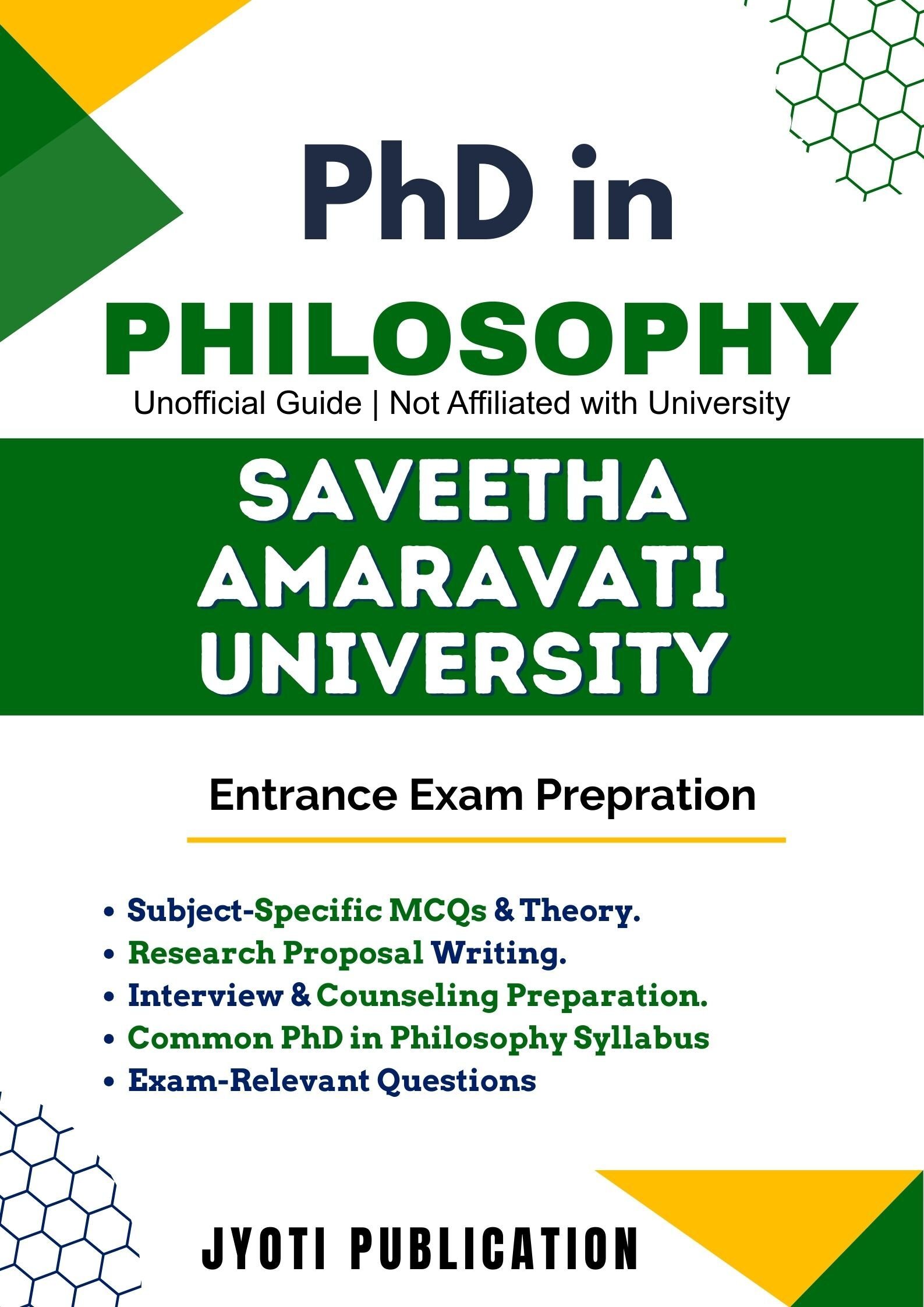 Saveetha Amaravati University PhD in Philosophy Entrance Exam Preparation Guide is an independently developed study resource created to support aspirants preparing for the PhD in Philosophy entrance examination conducted by Saveetha Amaravati University. The book is designed to help candidates understand concepts clearly, practise exam-oriented questions, and prepare in a structured and efficient manner.