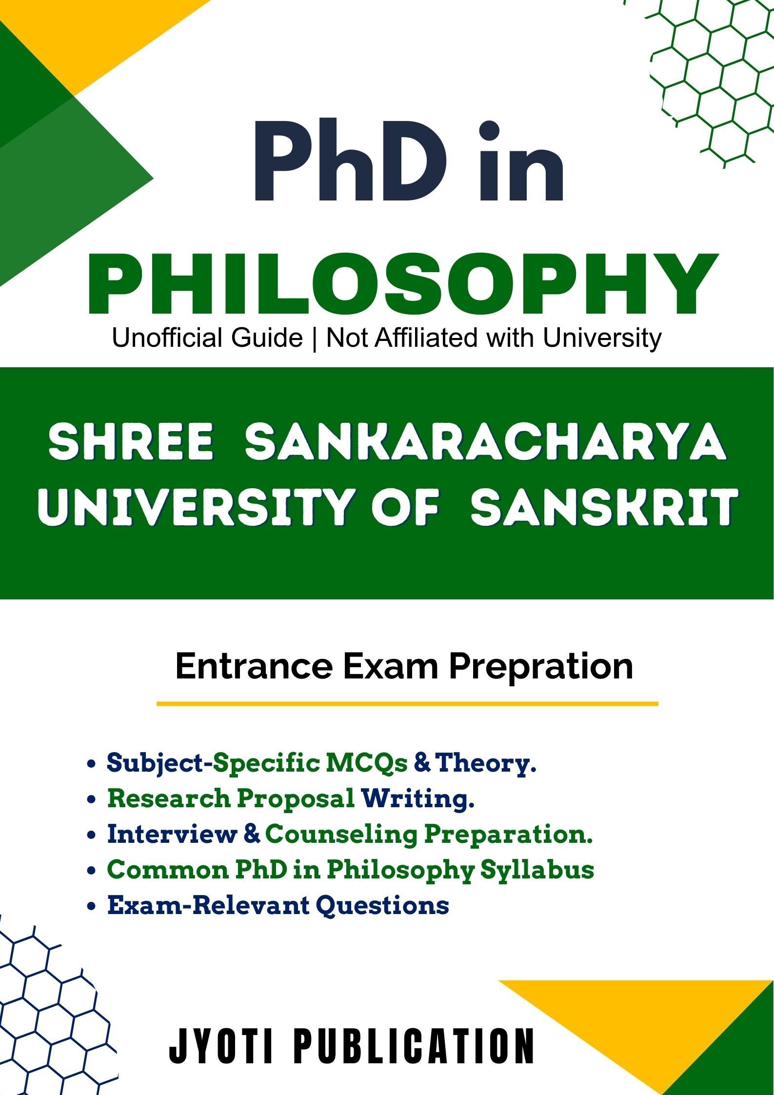 Shree Sankaracharya University of Sanskrit PhD in Philosophy Entrance Exam Preparation Guide is an independently developed study resource created to support aspirants preparing for the PhD in Philosophy entrance examination conducted by Shree Sankaracharya University of Sanskrit. The book is designed to help candidates understand concepts clearly, practise exam-oriented questions, and prepare in a structured and efficient manner.