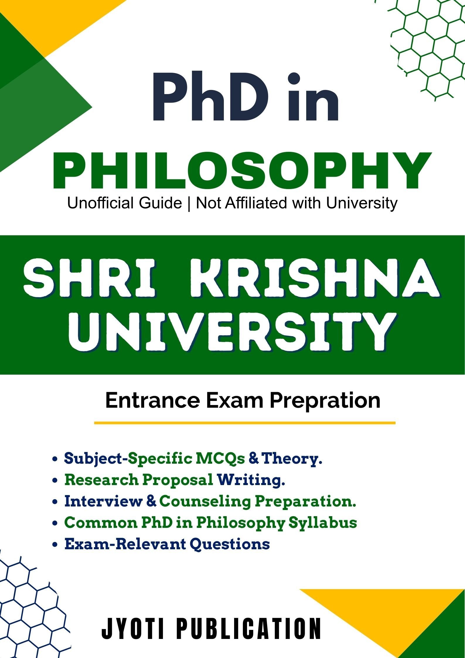 Shri Krishna University PhD in Philosophy Entrance Exam Preparation Guide is an independently developed study resource created to support aspirants preparing for the PhD in Philosophy entrance examination conducted by Shri Krishna University. The book is designed to help candidates understand concepts clearly, practise exam-oriented questions, and prepare in a structured and efficient manner.
