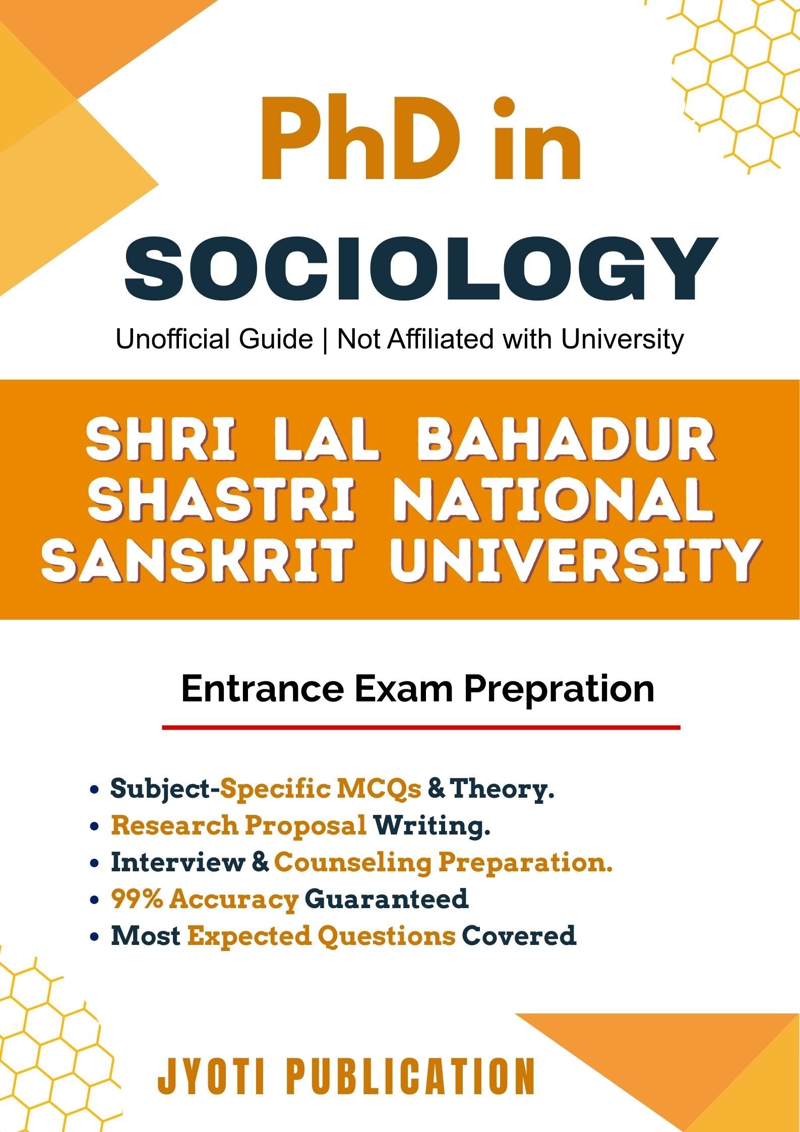 Shri Lal Bahadur Shastri National Sanskrit University PhD in Sociology Entrance Exam Preparation Guide is an independently developed study resource created to support aspirants preparing for the PhD in Sociology entrance examination conducted by Shri Lal Bahadur Shastri National Sanskrit University. The book is designed to help candidates understand concepts clearly, practise exam-oriented questions, and prepare in a structured and efficient manner.