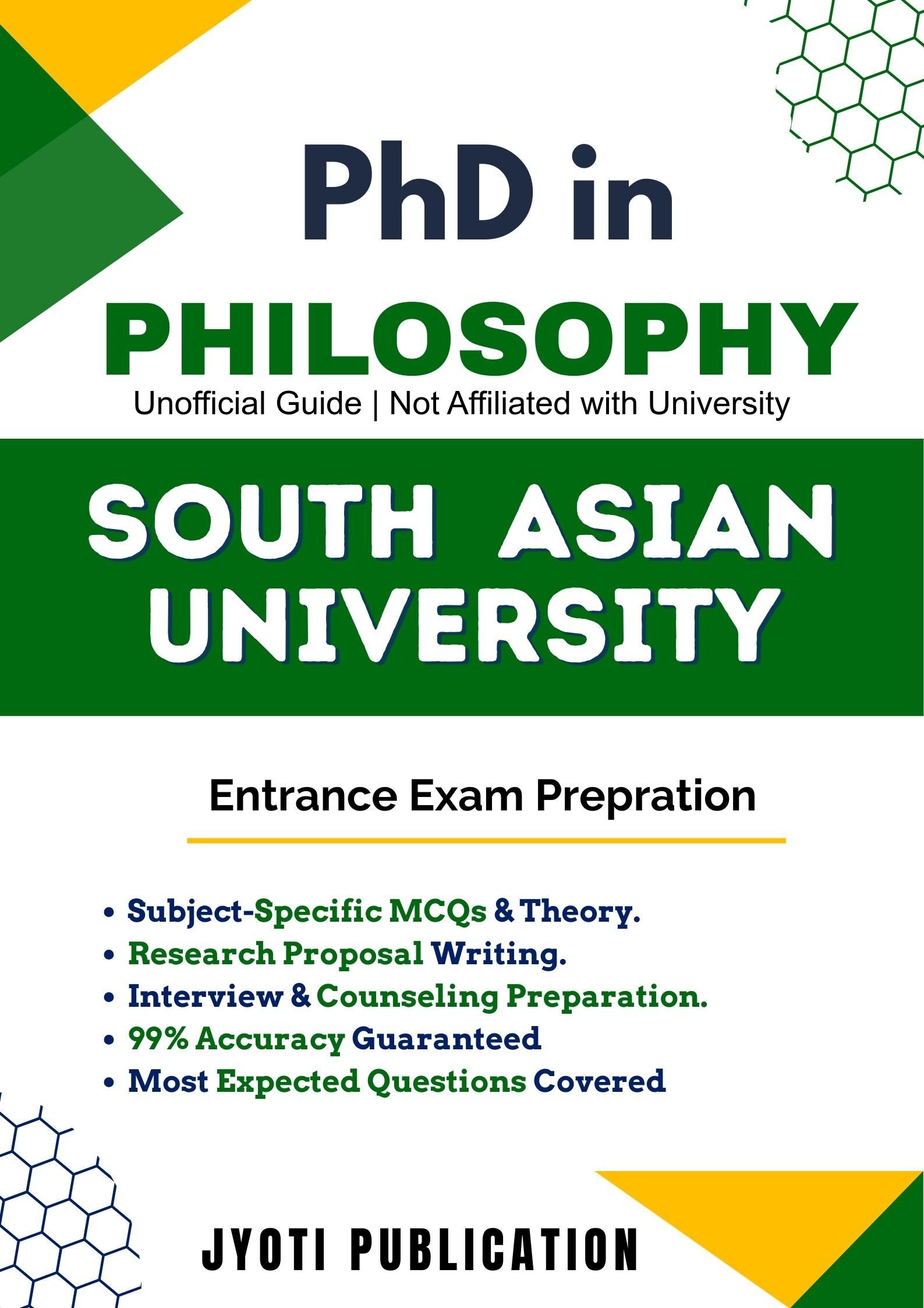 South Asian University PhD in Philosophy Entrance Exam Preparation Guide is an independently developed study resource created to support aspirants preparing for the PhD in Philosophy entrance examination conducted by South Asian University. The book is designed to help candidates understand concepts clearly, practise exam-oriented questions, and prepare in a structured and efficient manner.