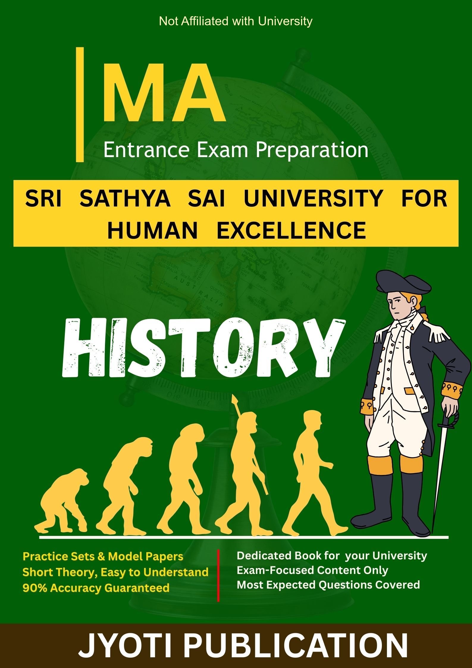 Sri Sathya Sai University for Human Excellence MA History Entrance Exam Preparation Guide is an independently developed study resource created to support aspirants preparing for the MA History entrance examination conducted by Sri Sathya Sai University for Human Excellence. The book is designed to help candidates understand concepts clearly, practise exam-oriented questions, and prepare in a structured and efficient manner.