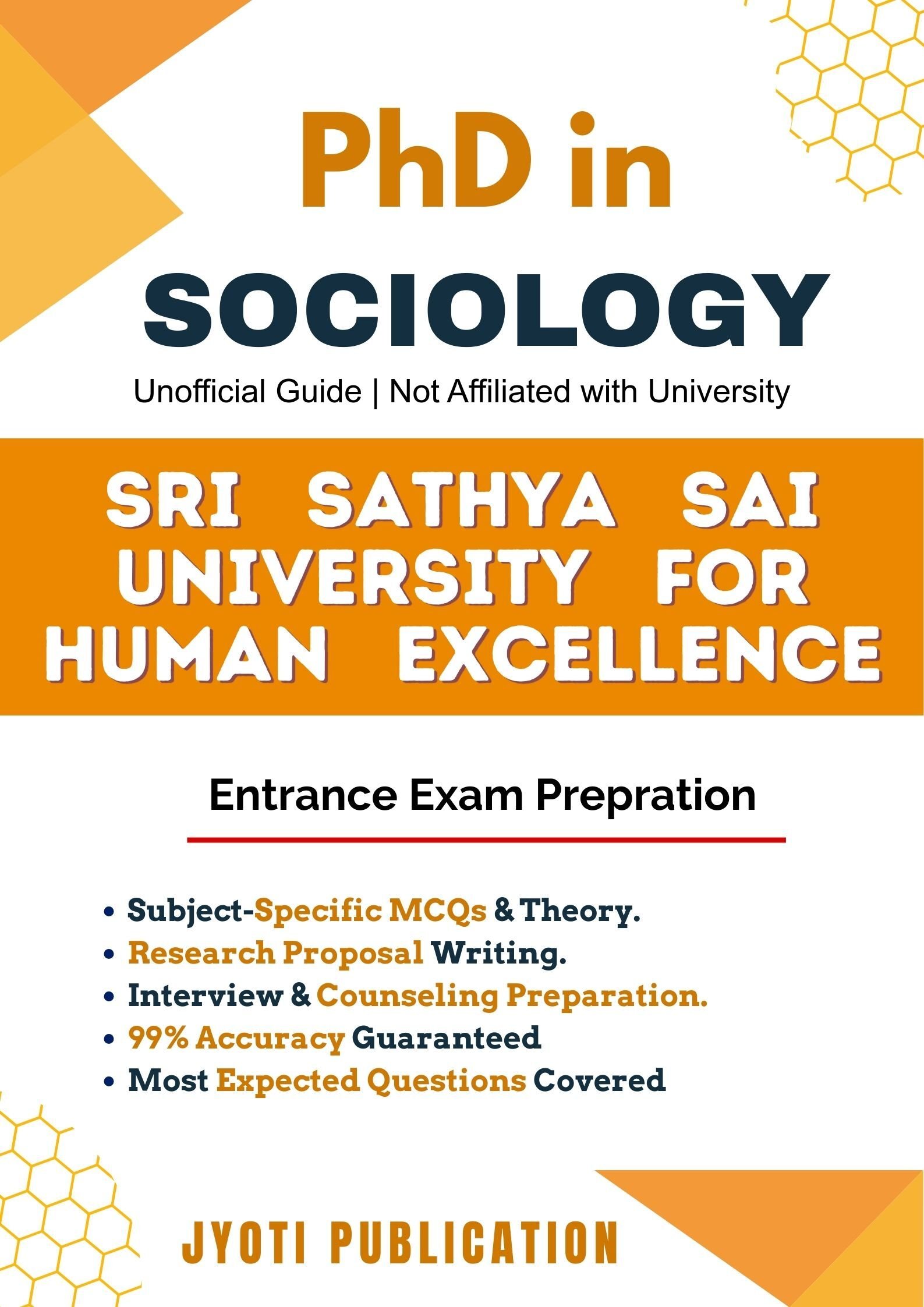 Sri Sathya Sai University for Human Excellence PhD in Sociology Entrance Exam Preparation Guide is an independently developed study resource created to support aspirants preparing for the PhD in Sociology entrance examination conducted by Sri Sathya Sai University for Human Excellence. The book is designed to help candidates understand concepts clearly, practise exam-oriented questions, and prepare in a structured and efficient manner.