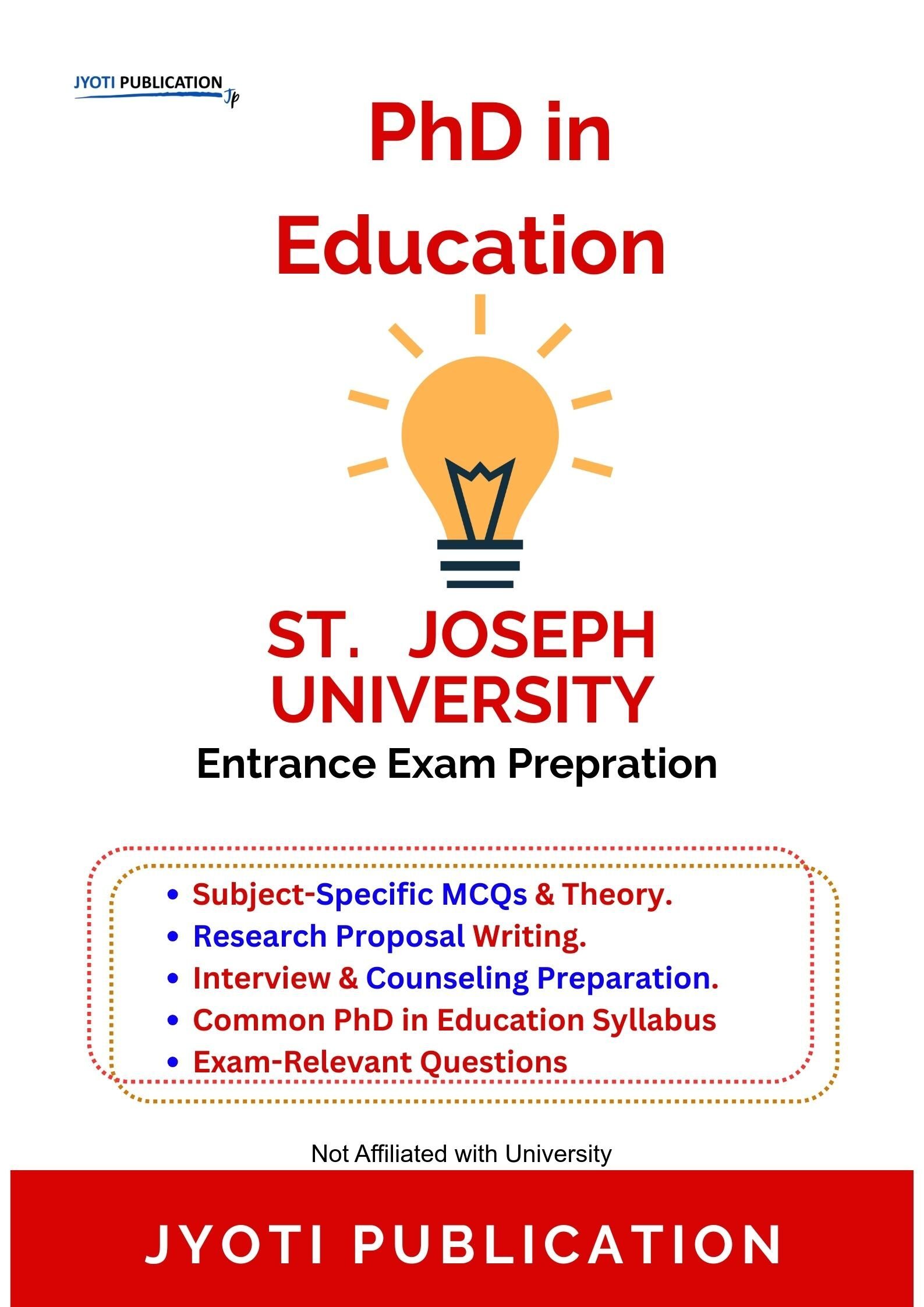 St. Joseph University PhD in Education Entrance Entrance Exam Preparation Guide is an independently developed study resource created to support aspirants preparing for the PhD in Education Entrance entrance examination conducted by St. Joseph University. The book is designed to help candidates understand concepts clearly, practise exam-oriented questions, and prepare in a structured and efficient manner.