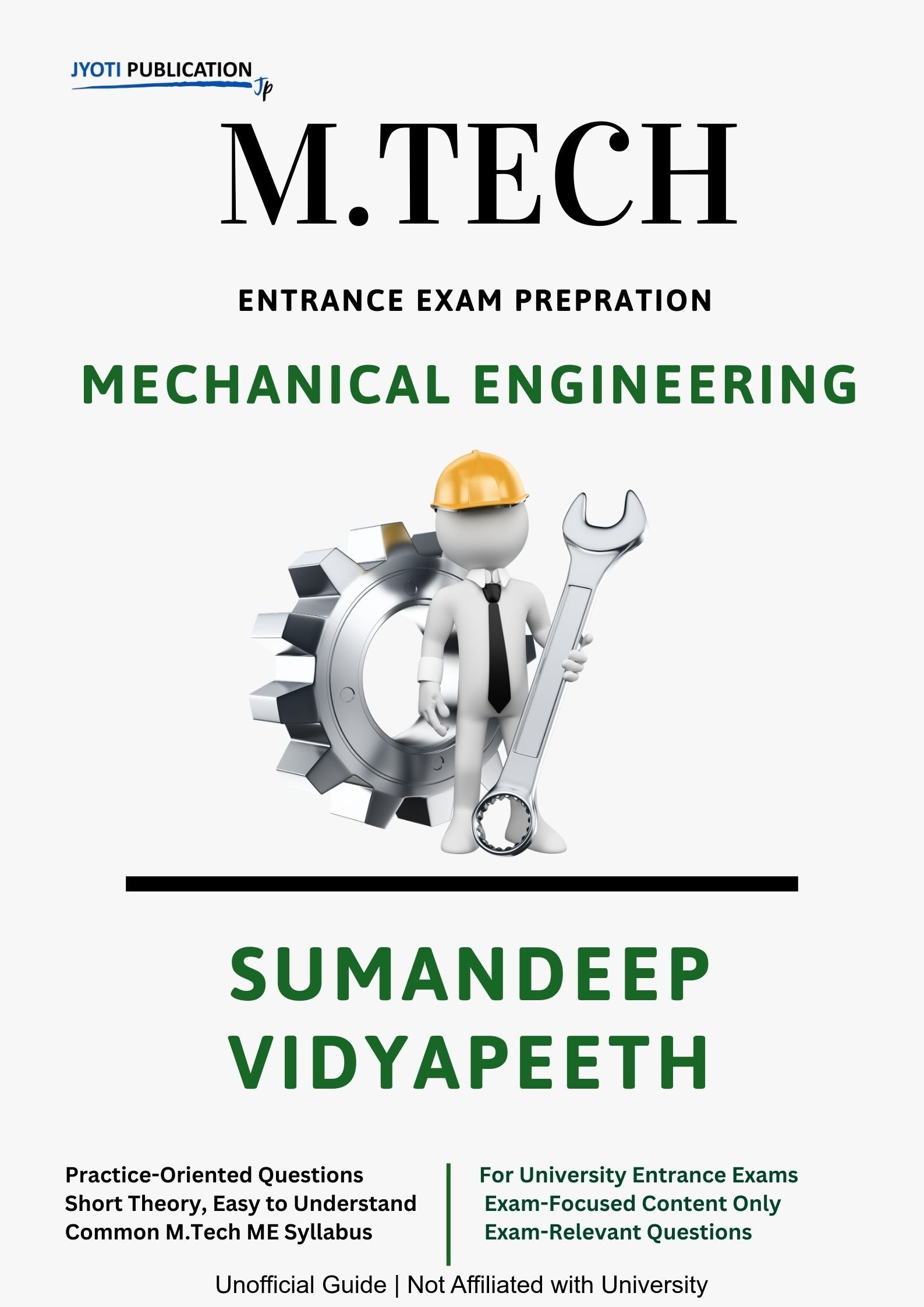Sumandeep Vidyapeeth M.Tech in Mechanical Engineering Entrance Exam Preparation Guide is an independently developed study resource created to support aspirants preparing for the M.Tech in Mechanical Engineering entrance examination conducted by Sumandeep Vidyapeeth. The book is designed to help candidates understand concepts clearly, practise exam-oriented questions, and prepare in a structured and efficient manner.