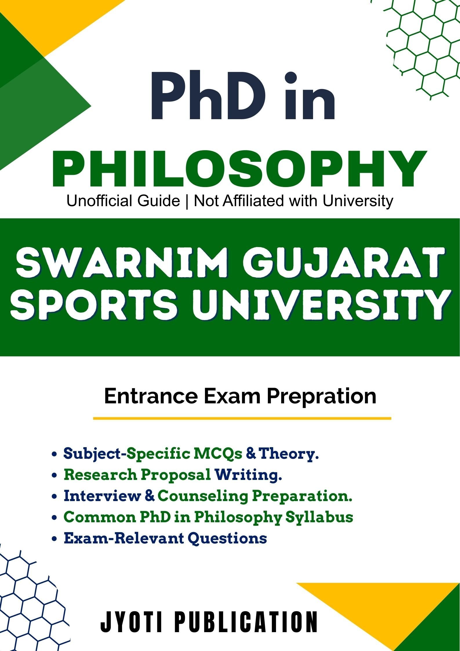 Swarnim Gujarat Sports University PhD in Philosophy Entrance Exam Preparation Guide is an independently developed study resource created to support aspirants preparing for the PhD in Philosophy entrance examination conducted by Swarnim Gujarat Sports University. The book is designed to help candidates understand concepts clearly, practise exam-oriented questions, and prepare in a structured and efficient manner.