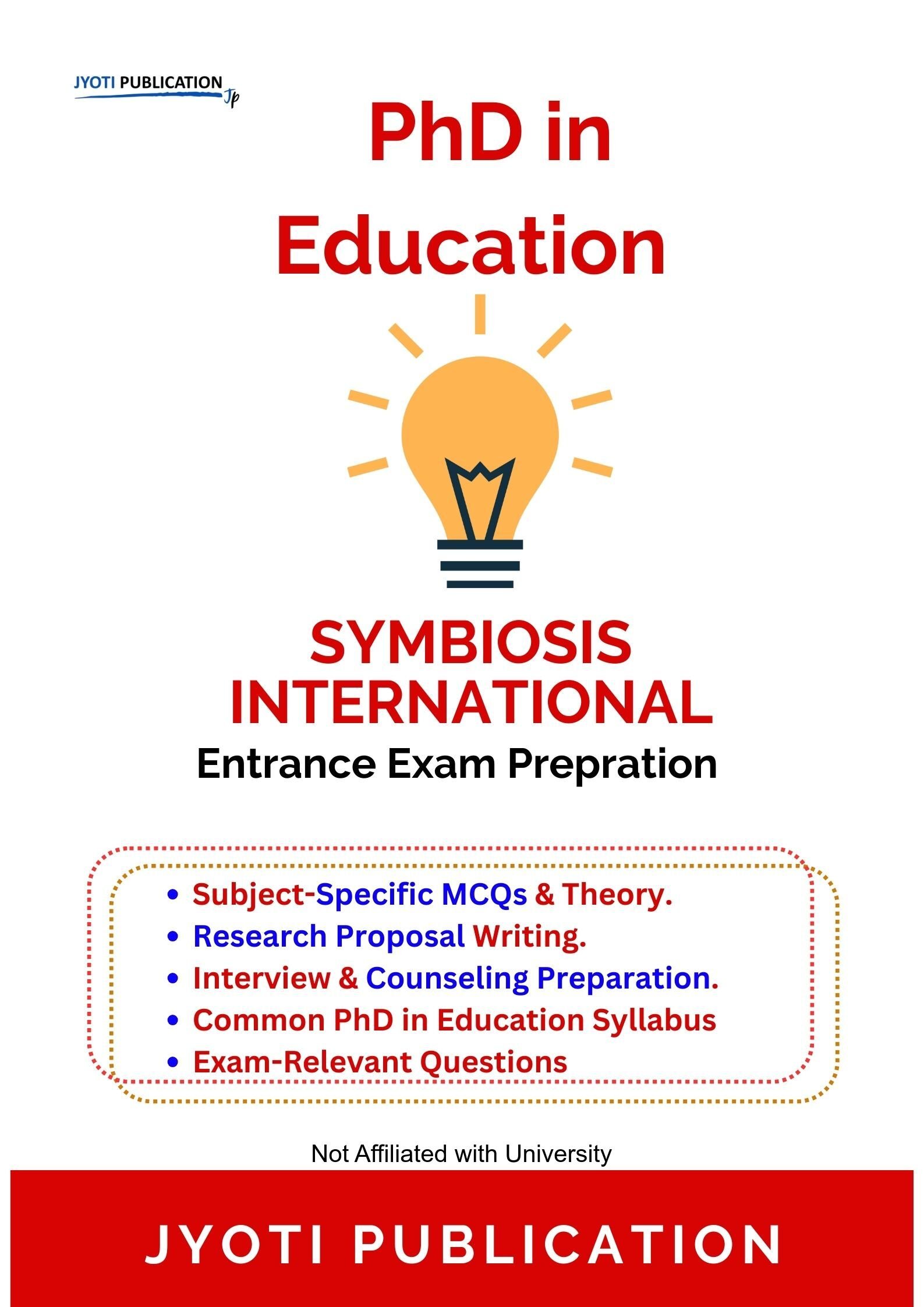 SYMBIOSIS International PhD in Education Entrance Entrance Exam Preparation Guide is an independently developed study resource created to support aspirants preparing for the PhD in Education Entrance entrance examination conducted by SYMBIOSIS International. The book is designed to help candidates understand concepts clearly, practise exam-oriented questions, and prepare in a structured and efficient manner.