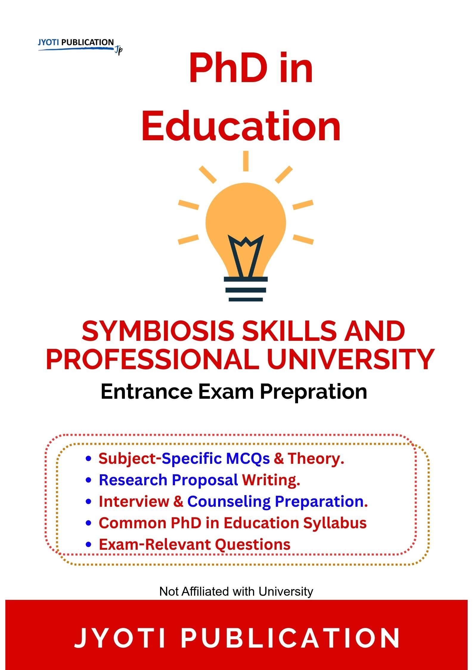 Symbiosis Skills and Professional University Formerly Symbiosis Skills and Open University PhD in Education Entrance Entrance Exam Preparation Guide is an independently developed study resource created to support aspirants preparing for the PhD in Education Entrance entrance examination conducted by Symbiosis Skills and Professional University Formerly Symbiosis Skills and Open University. The book is designed to help candidates understand concepts clearly, practise exam-oriented questions, and prepare in a structured and efficient manner.