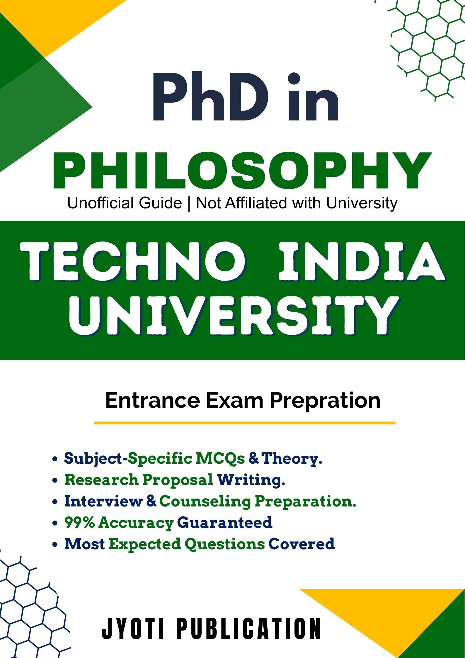 Techno India University PhD in Philosophy Entrance Exam Preparation Guide is an independently developed study resource created to support aspirants preparing for the PhD in Philosophy entrance examination conducted by Techno India University. The book is designed to help candidates understand concepts clearly, practise exam-oriented questions, and prepare in a structured and efficient manner.