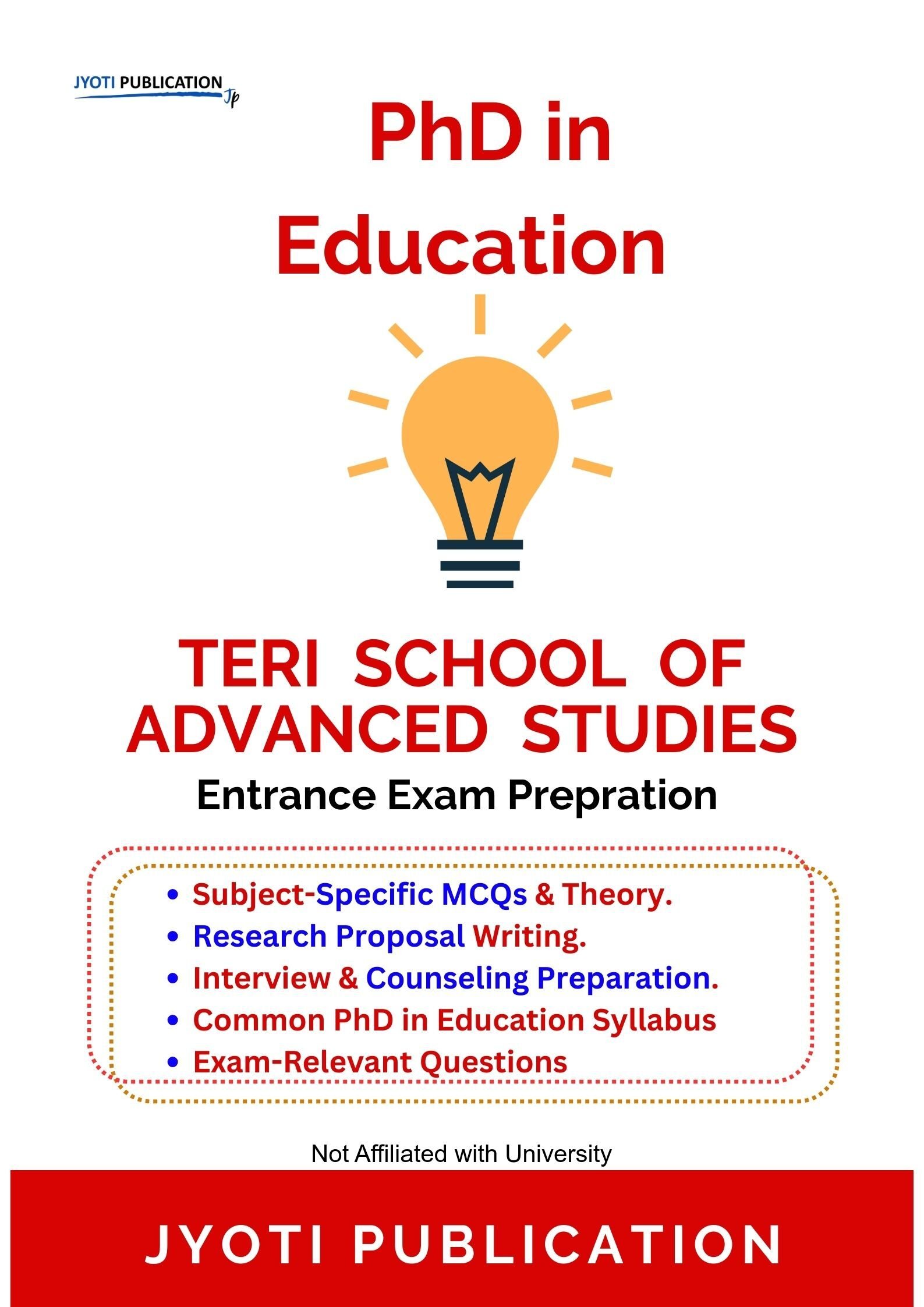 TERI School of Advanced Studies PhD in Education Entrance Entrance Exam Preparation Guide is an independently developed study resource created to support aspirants preparing for the PhD in Education Entrance entrance examination conducted by TERI School of Advanced Studies. The book is designed to help candidates understand concepts clearly, practise exam-oriented questions, and prepare in a structured and efficient manner.