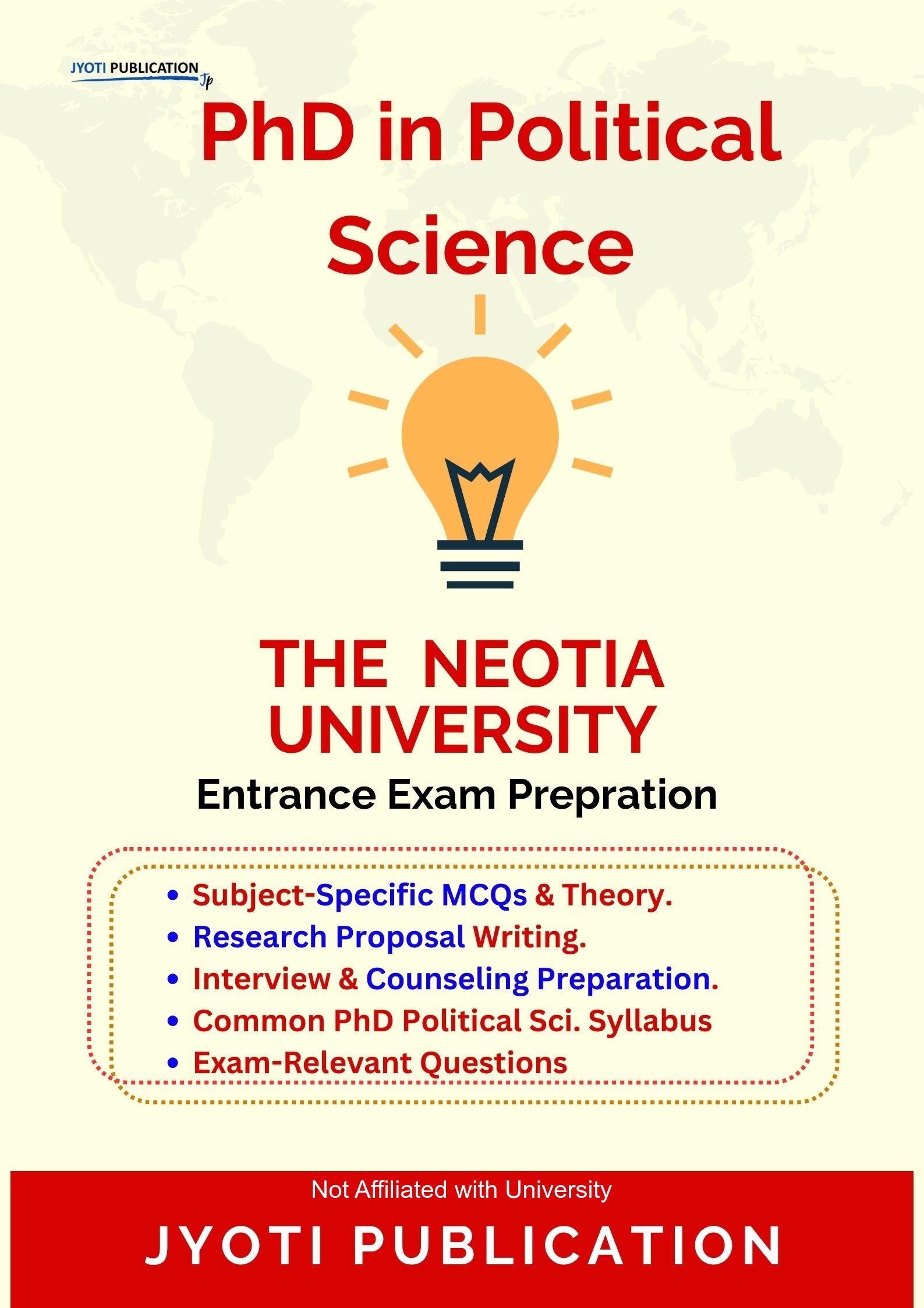 The Neotia University PhD in Political Science Entrance Exam Preparation Guide is an independently developed study resource created to support aspirants preparing for the PhD in Political Science entrance examination conducted by The Neotia University. The book is designed to help candidates understand concepts clearly, practise exam-oriented questions, and prepare in a structured and efficient manner.