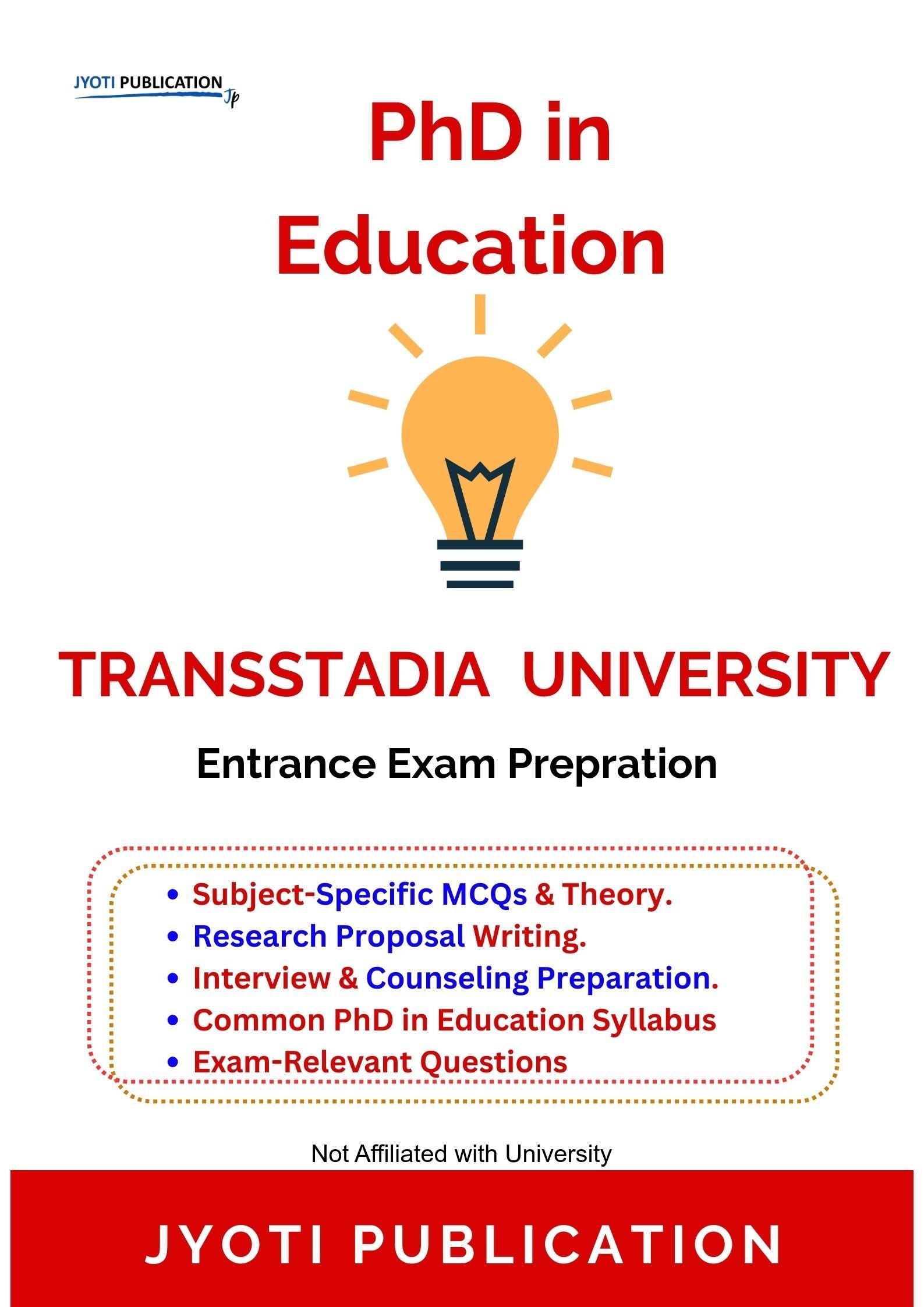 Transstadia University PhD in Education Entrance Entrance Exam Preparation Guide is an independently developed study resource created to support aspirants preparing for the PhD in Education Entrance entrance examination conducted by Transstadia University. The book is designed to help candidates understand concepts clearly, practise exam-oriented questions, and prepare in a structured and efficient manner.
