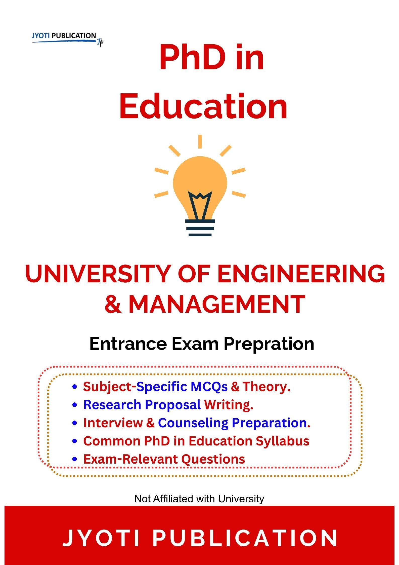 University of Engineering Management PhD in Education Entrance Entrance Exam Preparation Guide is an independently developed study resource created to support aspirants preparing for the PhD in Education Entrance entrance examination conducted by University of Engineering Management. The book is designed to help candidates understand concepts clearly, practise exam-oriented questions, and prepare in a structured and efficient manner.