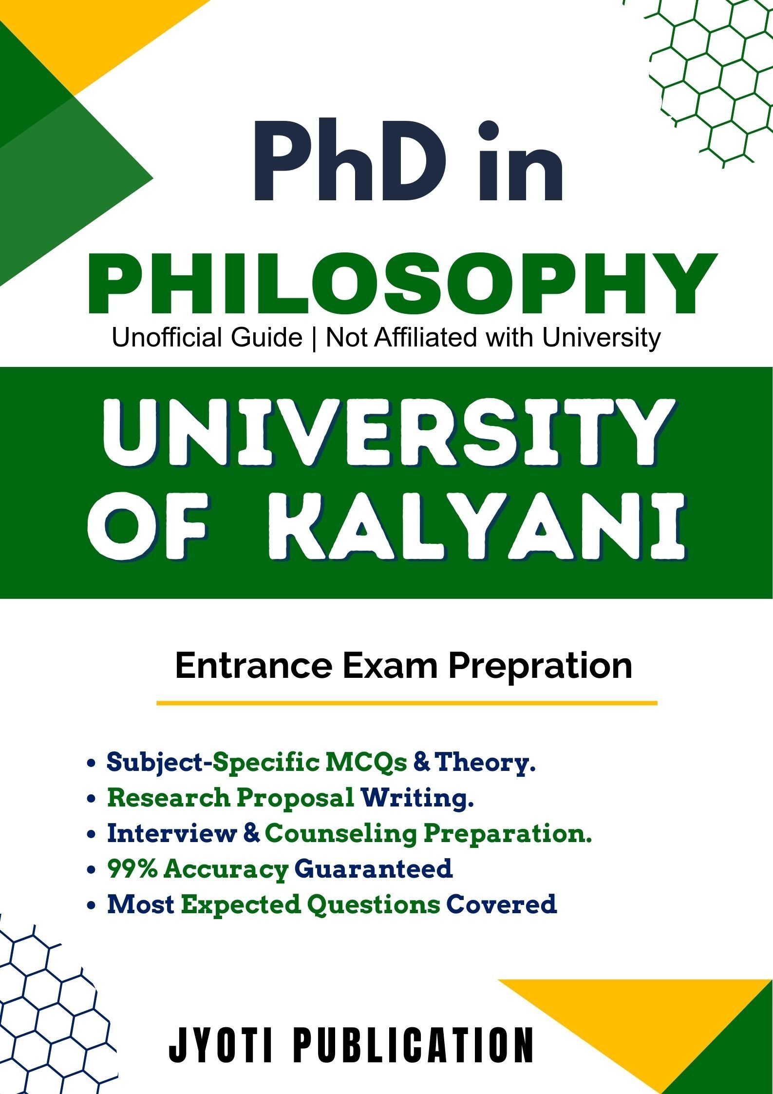 University of Kalyani PhD in Philosophy Entrance Exam Preparation Guide is an independently developed study resource created to support aspirants preparing for the PhD in Philosophy entrance examination conducted by University of Kalyani. The book is designed to help candidates understand concepts clearly, practise exam-oriented questions, and prepare in a structured and efficient manner.