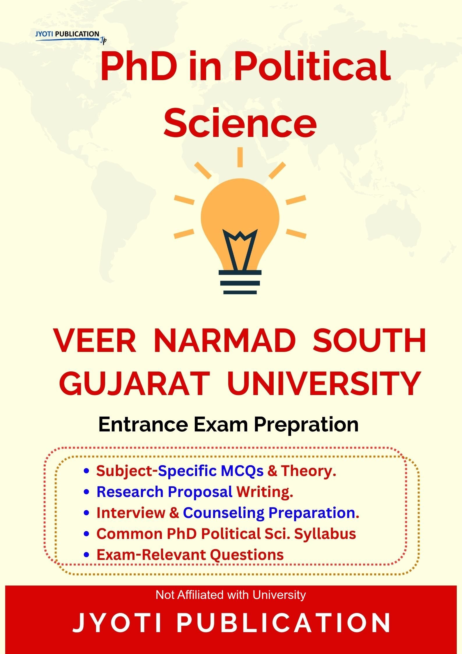 Veer Narmad South Gujarat University PhD in Political Science Entrance Exam Preparation Guide is an independently developed study resource created to support aspirants preparing for the PhD in Political Science entrance examination conducted by Veer Narmad South Gujarat University. The book is designed to help candidates understand concepts clearly, practise exam-oriented questions, and prepare in a structured and efficient manner.
