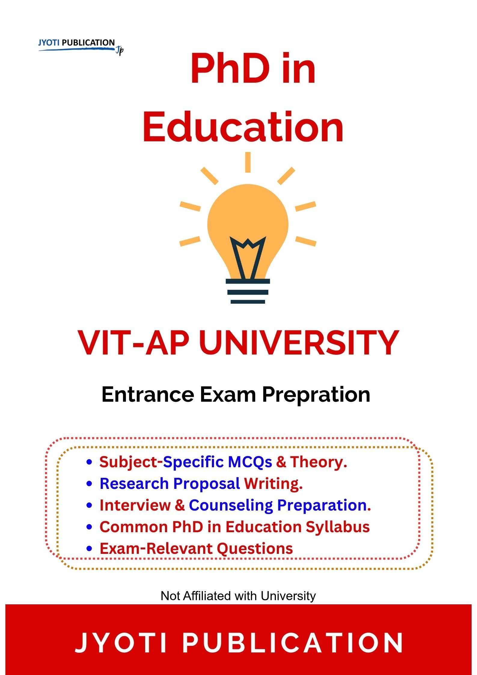 VIT AP University PhD in Education Entrance Entrance Exam Preparation Guide is an independently developed study resource created to support aspirants preparing for the PhD in Education Entrance entrance examination conducted by VIT AP University. The book is designed to help candidates understand concepts clearly, practise exam-oriented questions, and prepare in a structured and efficient manner.